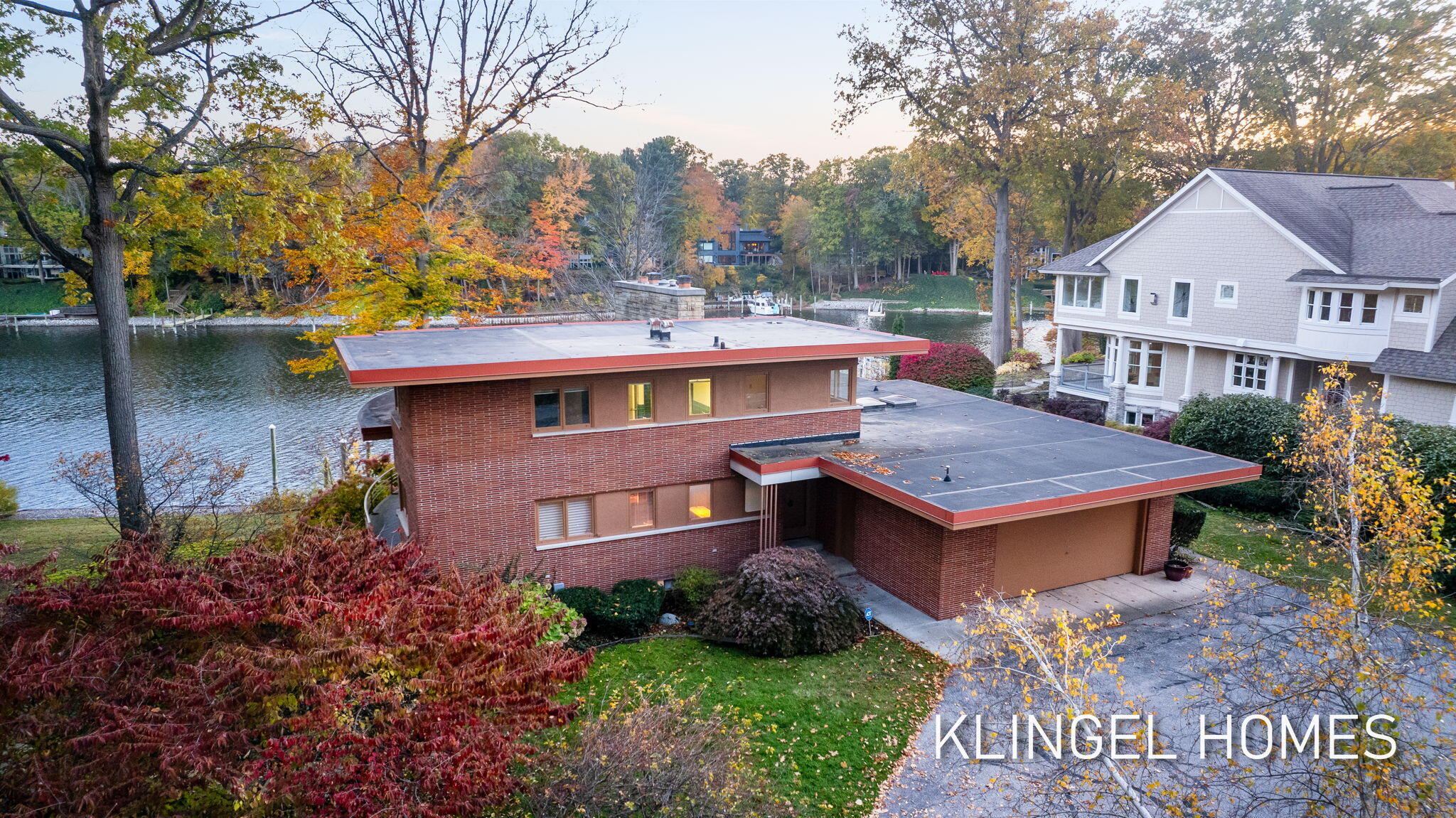 Welcome to 16160 Highland Dr, Spring Lake! This stunning lakefront home showcases a beautiful mid century modern design that allows for a panoramic view of the lake from every room! This home is situated on 255 ft of water frontage and located on a double lot, RARE FIND ON SPRING LAKE. Upon entering you are welcomed by beautiful slate flooring, a stunning custom built stone fireplace, and large windows wrapped around the living area framing in the gorgeous waterfront view! The contemporary style is incorporated throughout the entire home from the wide plank shiplap that lines the hallways to the stunning woodwork of the ceilings showcased in the living area. This home is truly one of a kind! The primary bedroom on the main level offers an attached ensuite complete with a soaking tub and stand up shower! Heading to the upper level you are welcomed by 2 additional bedrooms and 1 full bathroom. The lower level showcases a partially finished basement with a walkout to the expansive backyard with stunning views of Spring Lake. Call today to schedule your private showing!